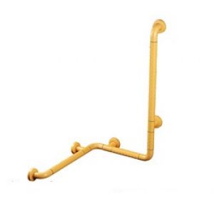 • поручень угловой • ширина поручня по одной стене — 80 см • ширина поручня по другой стене — 45 см • высота поручня — 100 см • диаметр поручня — 3,5 см • противоскользящая поверхность • материал — нержавеющая сталь, нейлон • цвет — белый, желтый