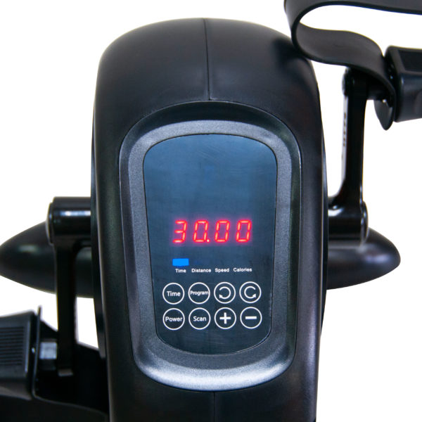 С помощью пульта управления или кнопок на дисплее можно настроить режимы тренировки. Можно регулировать скорость вращения педалей, направление вращение (вперед/назад). Дисплей тренажера отображает время, пройденную дистанцию и счетчик калорий.