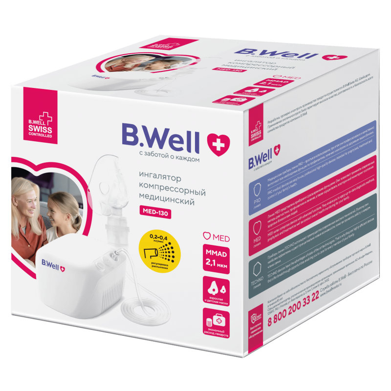 MED-130 сочетает в себе медицинскую эффективность, соответствующую европейским стандартам небулайзерной терапии, с простотой и удобством домашнего использования.