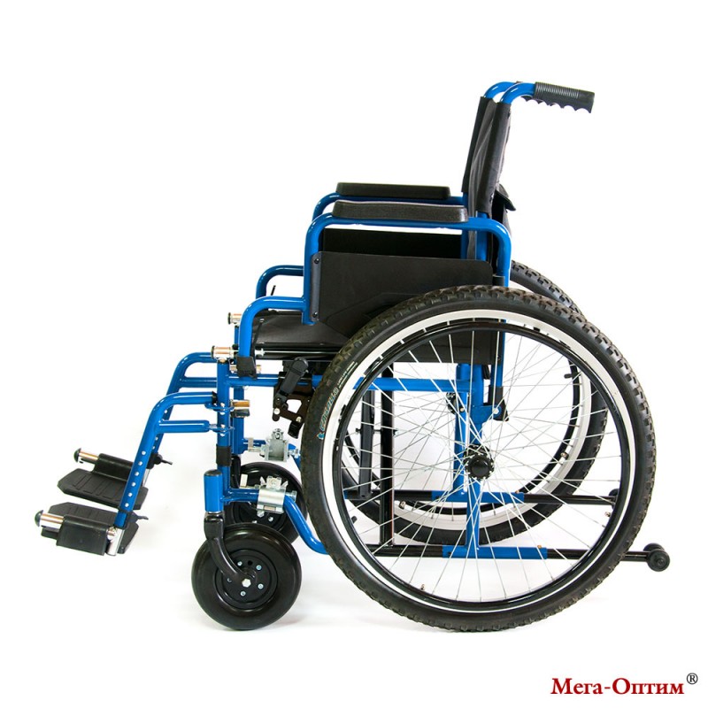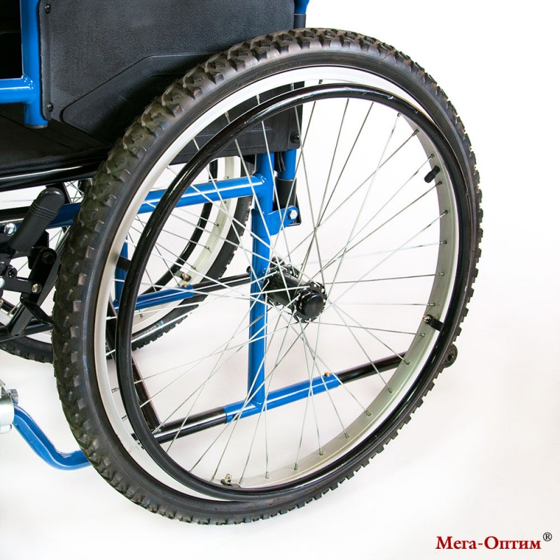 Кресло-коляска инвалидное с ручным приводом предназначена для передвижения больных и инвалидов с частичной потерей функций опорно-двигательного аппарата преимущественно на открытых площадках (на улице), как самостоятельно, так и с помощью сопровождающего лица. Коляска оснащена задними пневматическими колесами с глубоким протектором для лучшего зацепления за поверхность дороги, позволяющим преодолевать незначительные расстояния в плохих погодных условиях (дождь, грязь, снег). Кресло-коляска имеет складную конструкцию по вертикальной оси. Рама коляски стальная с полимерным покрытием.
