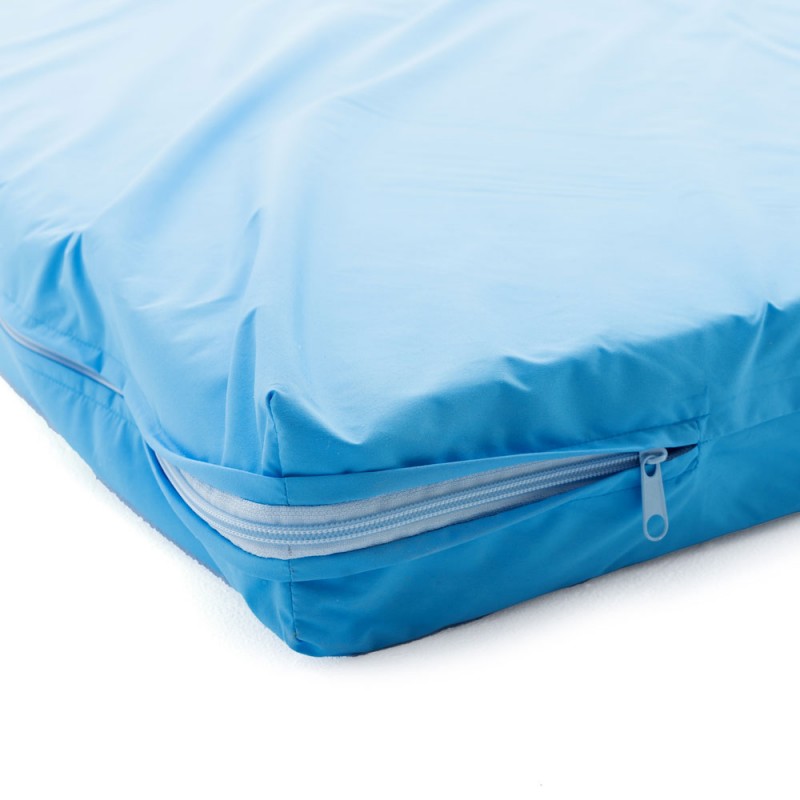 Водонепроницаемый съёмный чехол с П-образной застёжкой-молнией выполнен из синтетической ткани с полиуретановой мембраной и препятствует скатыванию простыни, обеспечивая максимальный комфорт для пациента, обладает устойчивостью к воздействию агрессивной биологической жидкости (пота, мочи) в соответствии с МУ 25.1-001.