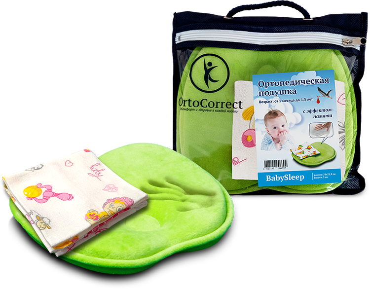 Ортопедическая подушка BabySleep рассчитана на возраст от 1 месяца до 1,5 лет.. Подушка из пенополиуретана с углублением в центре разработана с учетом специфики строения детского организма. Упругая и эластичная  основа оставляет необходимую свободу движений для малыша в этом возрасте. Пористый материал не препятствует естественному воздухообмену и влагоотведению, благодаря чему ребенок меньше потеет.