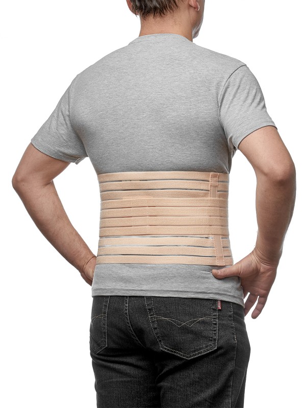 Бандаж изготовлен из эластичных воздухо- и влагопроницаемых материалов, состоит из широкого пояса на застежке с двумя ребрами жесткости по бокам и съемного пелота, крепящегося к поясу с помощью эластичной лямки на застежке. Изделие обеспечивает профилактику ущемления или прогрессирования грыж при физической работе, натуживании, при слабости мышц брюшной стенки. Обеспечивает оптимальные условия для формирования рубца после операций на органах брюшной полости или после кесарева сечения.