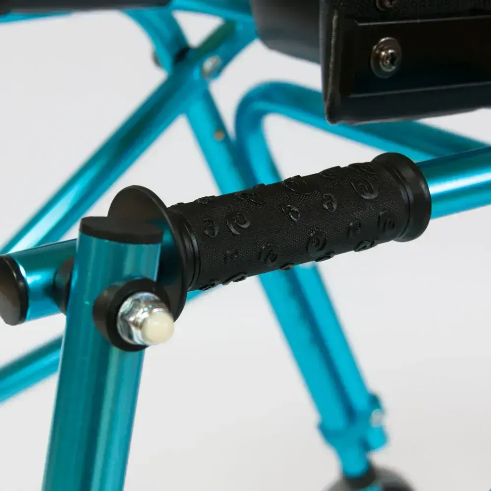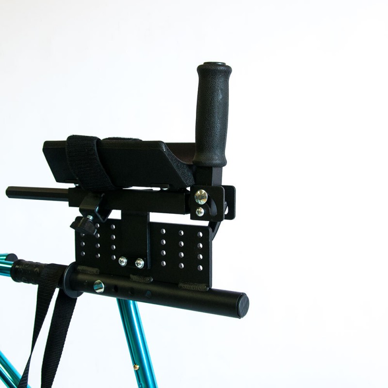Подлокотные опоры ходунков фиксируют предплечья в удобном положении, позволяя при этом держаться руками за рукоятки с нескользящим покрытием; угол наклона рукояток можно изменять от вертикального до горизонтального положения.