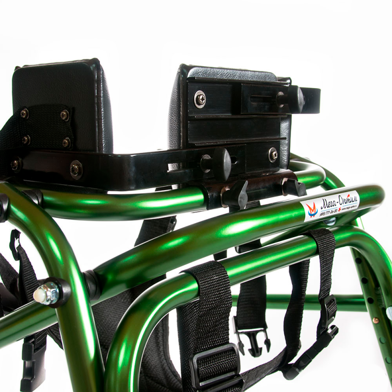 Стабилизатор спины оснащен тремя поддерживающими подушками, фиксирующими туловище в одном положении, а также страховочным ремнем для безопасности. Стабилизатор регулируется в зависимости от размеров туловища ребенка: максимальная ширина между боковыми фиксирующими подушками – 32 см.