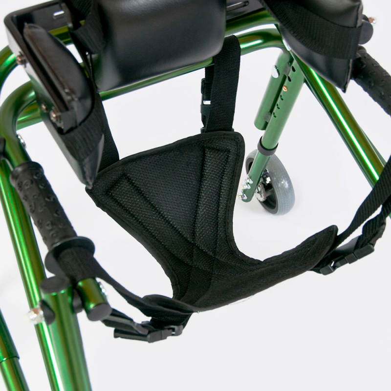 Фиксатор таза ( поддерживающие трусики) выполнен из мягкого и дышащего материала и крепится на раме ходунков с помощью регулировочных ремней.