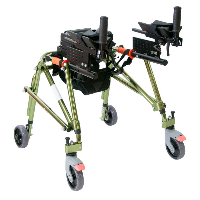 Ходунки на четырех колесах реверсивного типа предназначены для детей-инвалидов, страдающих различными формами ДЦП, способствуют устранению нарушений осанки и патологической установки стоп, помогают удерживать равновесие при ходьбе и стоянии.