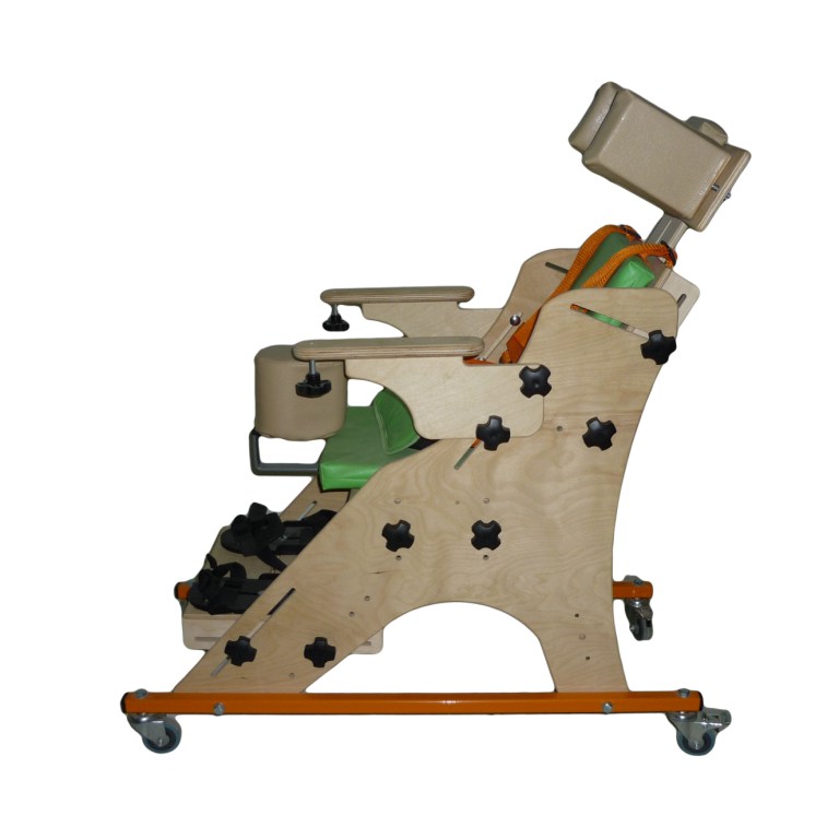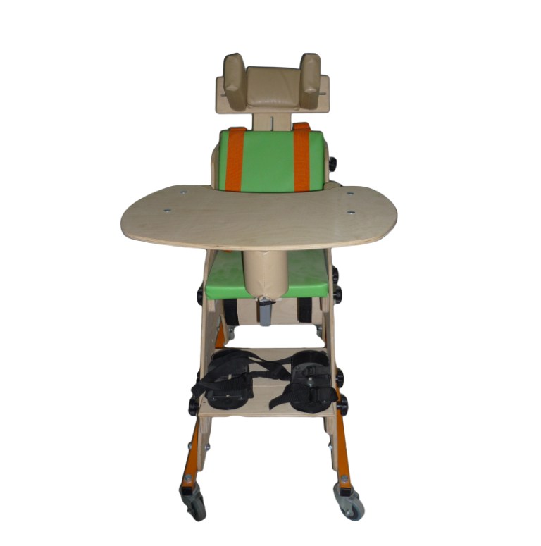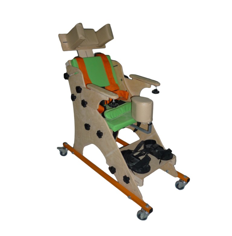 Опора для сидения представляет собой ортопедическое кресло на деревянной раме, расположенной на металлическом четырехколесном основании. Все колеса поворотные, задние колеса оснащены стояночными тормозами. Сидение и спинка оснащены съемными мягкими подушками. На подножке расположены пластиковые крепления для ступней типа «сандалии» с задними упорами и крепежными ремешками. Опора оснащена подголовником и съемным столиком, устанавливаемым на подлокотники.