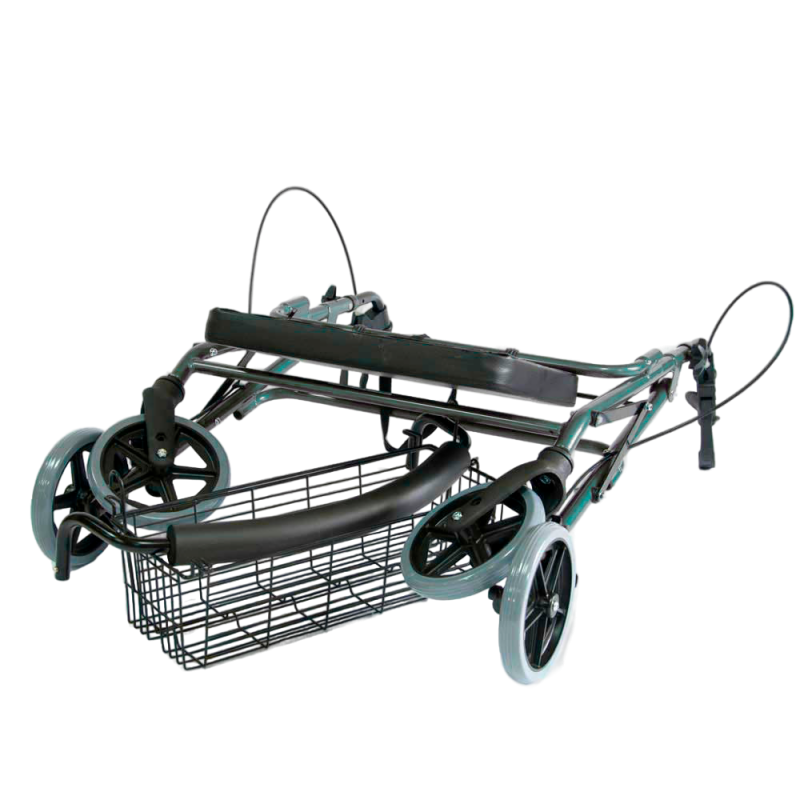 Конструкция ролятора с повышенной грузоподъемностью выполнена из стали с полимерным покрытием, сиденье обшито искусственной кожей. Ролятор оборудован двумя ручными тормозами задних колес c фиксирующей функцией, расположенных на ручках конструкции. Ручки имеют рифленую форму и не скользят в ладонях; регулируются по высоте. Под сиденьем закрепляется вместительная корзина для личных вещей и продуктов. Опору для спины можно отсоединить, если ролятор не используется в качестве стула. Ролятор складывается и не занимает много места дома или при транспортировке.