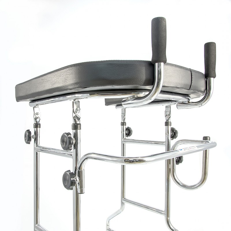 Ходунки предназначены для людей с инвалидностью, пожилых людей и больных, проходящих реабилитацию. Позволяют сохранять равновесие, улучшают координацию движений и уменьшают нагрузку на ноги. Модель оснащена U-образной подлокотной опорой, которая позволяет ставить на нее локти и предплечья, тем самым снимая нагрузку с мышц и суставов ног.